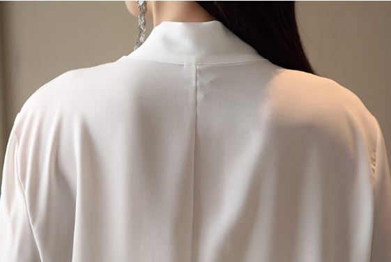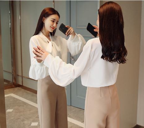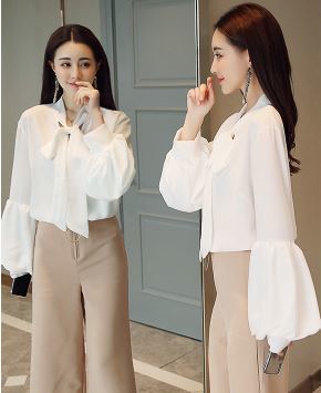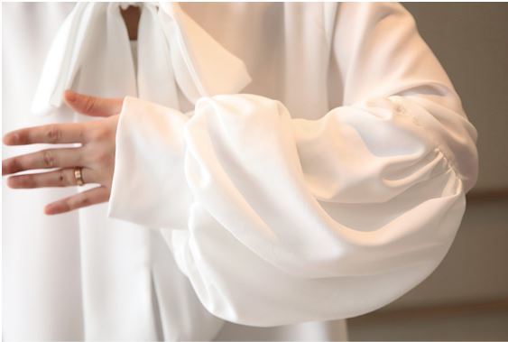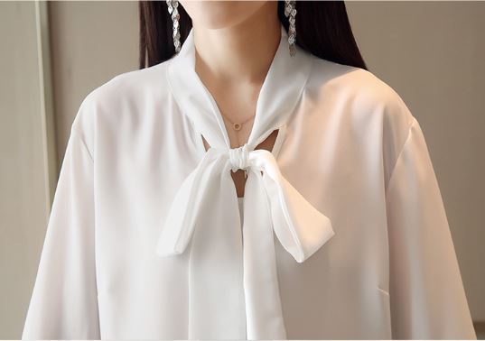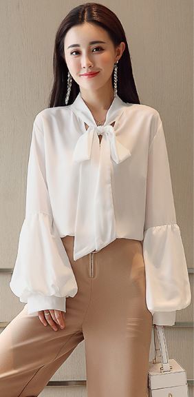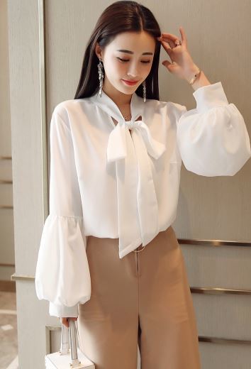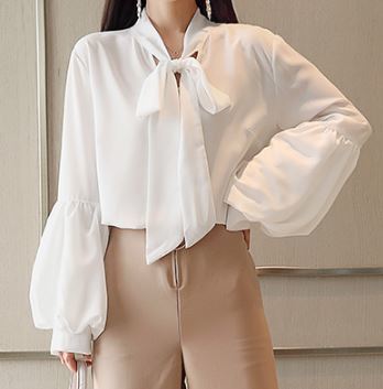 さらりとした生地感にふわりとしたボリュームのある袖がフェミニンなボウタイブラウスのご紹介です。