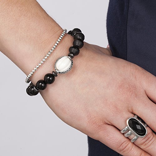 -. Feature : Each Blackboard Stretch Bracelet features beaded agate, hematite, and pyrite, totaling 146 1/2 ct and offset by a single sterling silver disc / MIX OF CULTURE: Mixing metals, materials, tones and textures allow for jewelry to tell a story. This beaded bracelet is crafted with earthy-toned stones such as pyrite, hematite, and agate and features a solitary sterling silver disc. / AGATE: Creatively striped by nature, each stone is guaranteed to be one-of-a-kind HEMATITE: Spiritually known to ground, stabilize, and protect, hematites range from red to metallic black in the color spectrum PYRITE: This natural mineral gleams with a beautiful metallic luster / STERLING SILVER: Silpada's signature metal is known amongst jewelry wearers for its strength, brightness, shine, and decreased risks of allergic reactions and tarnish residue on skin / Bracelet measures 3/4 inches in length (unstretched); largest bead measures 9/16 inches in width