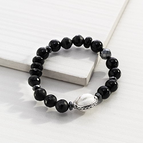 -. Title : Silpada 'Blackboard' Sterling Silver, Agate, Hematite, Howlite, and Pyrite Stretch Bracelet, 6.75"