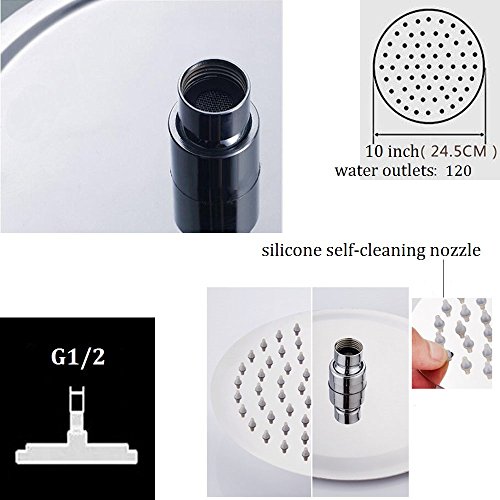 【MADE OF 100% STAINLESS STEEL】Stainless steel construction. Ultra Thin profile. 10 inch by 10 inch Square Showerhead Face. Easy to clean.