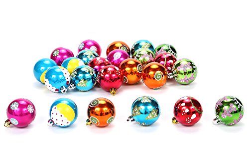 Sea Team 60mm/2.36" Shatterproof Colorful Painting & Glittering Christmas Balls Decorative Hanging Christmas Ornaments Baubles Set - 24 Counts