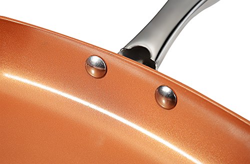 Get the most value for your money with Top-Rated Professional Grade Cooking Equipment! Induction bottom Nonstick 9.5-Inch Frying Pan is made of professional-grade 3003 Aluminum Alloy with heat resistant copper paint coating. Its non-stick copper ceramic coated (PFLUON) interior is exceptionally durable, double quoted and scratch resistant. Its sturdy Stainless Steel Handle creates a comfortable grip that resists rust and dullness.