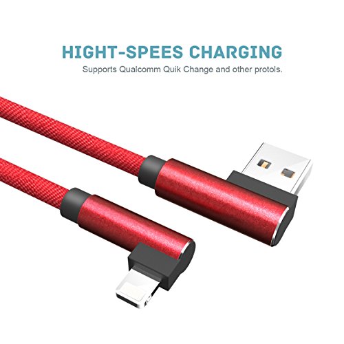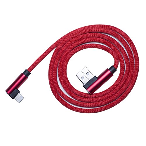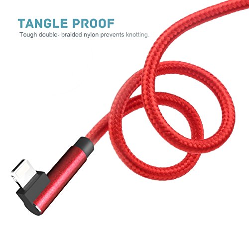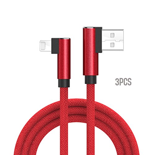 Lightning Cable Right Angle Fast Syncing Cable 3 Pack of 3Ft Nylon Lightning to USB Cables For iPhone 7/7 Plus/6/6S/6S Plus/Se/5S/5C/5, iPad Mini, iPad Air, iPad Pro, iPod 90 Degrees Red