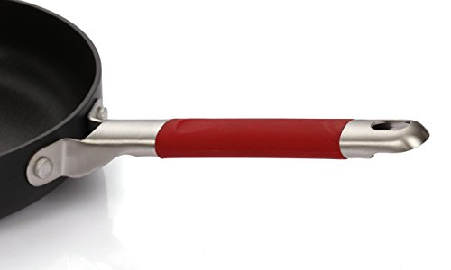 Riveted stainless steel handle wrapped in heat-resistant silicone provide a comfortable grip for a secure hold