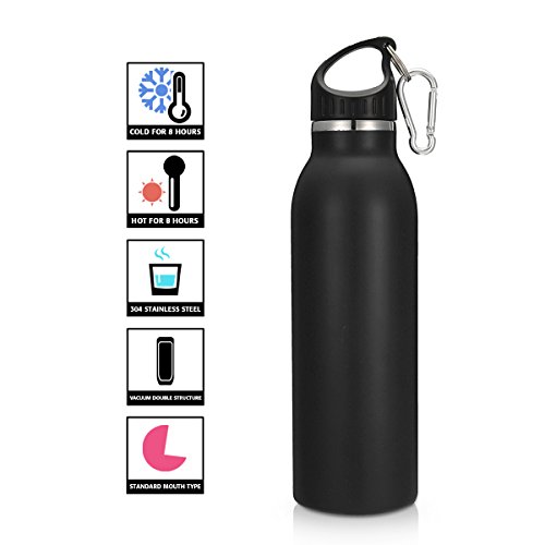 KINGSO 20oz Insulated Vacuum Flask Outdoor Sports Water Bottle, Standard Mouth BPA-Free Stainless Steel for Hot and Cold Beverages, Cap with Carabiner Clip Ideal for Camping/Hiking//Travel