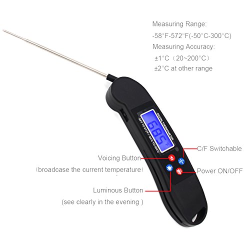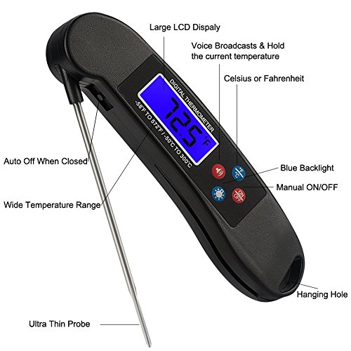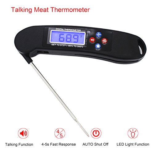 ★[CONVENIENT & CLEAR]: Get the temperature by voice or bright LCD screen, perfect for dark areas such as an outdoor night BBQ, dark oven, or any situation where vision might be impaired.