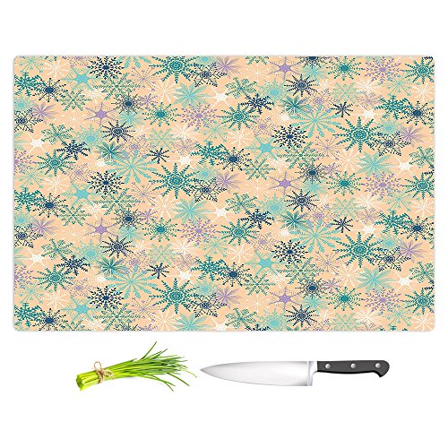 DiaNoche Designs CB-MetkaHitiSnowflakesPeachTeal2 Artist Metka Hiti-Snowflakes Peach Teal Cutting Boards from, Large 15" x 11"