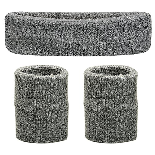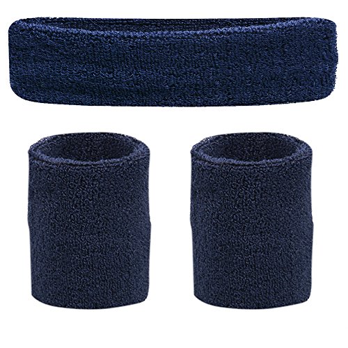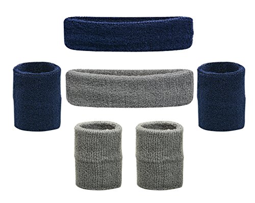 Oldhill Sweatband Set - (2 Headbands and 4 Wristbands) Thick Terry Cloth Cotton for Sports Indoor and Outdoor