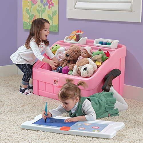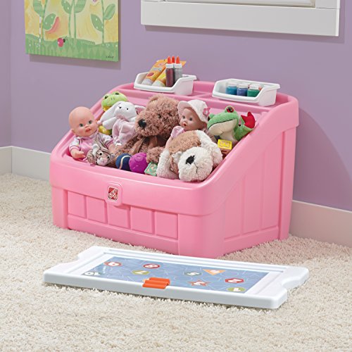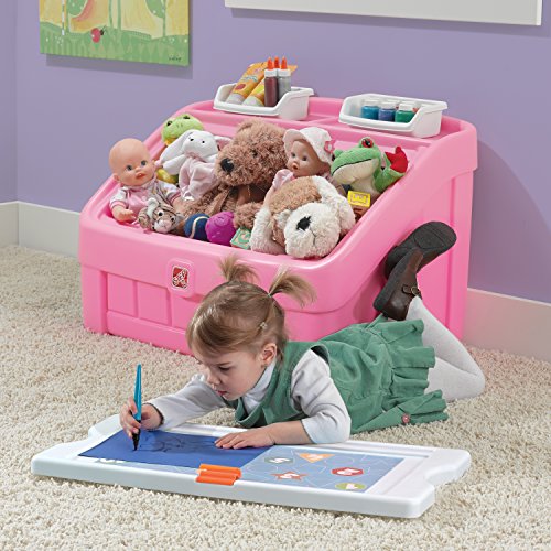 Art clip on the lid lets kids decorate their toy box by displaying their artwork
