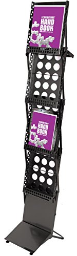 Displays2go 60.25-Inch Tall Folding Brochure Holder Has 4 Pockets, Black Metal Construction and Includes Carry Bag (LSTIL4BK)