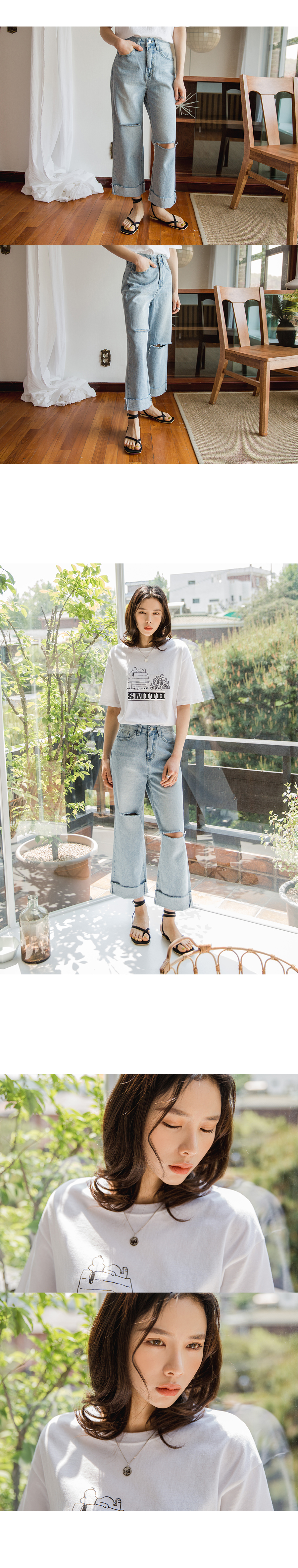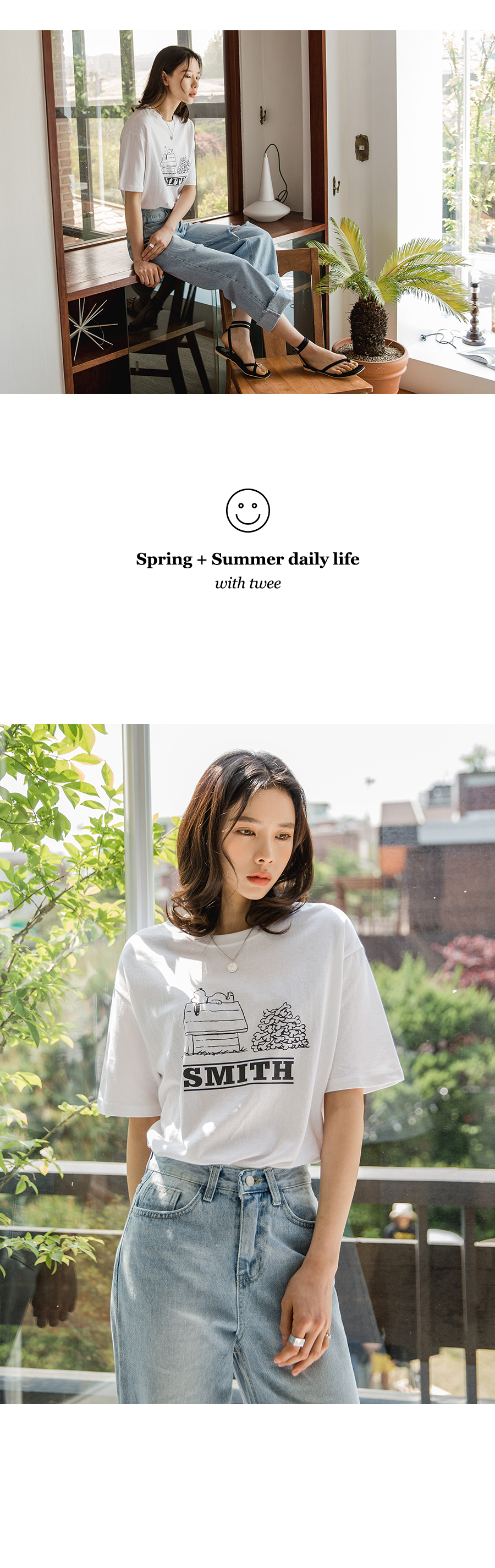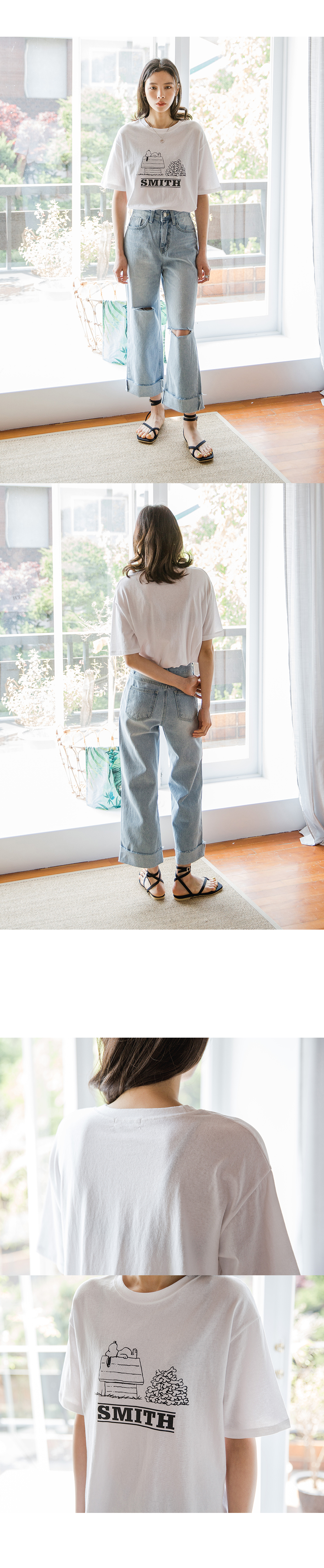 전체적으로 여유있는 핏감의 티셔츠입니다