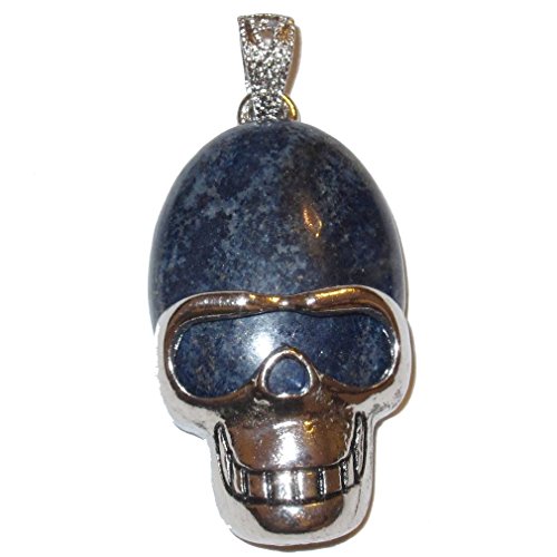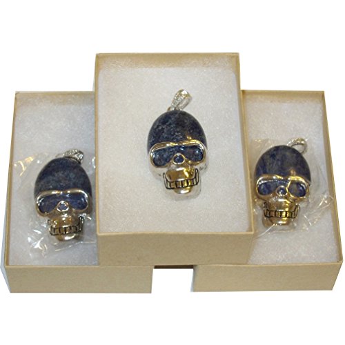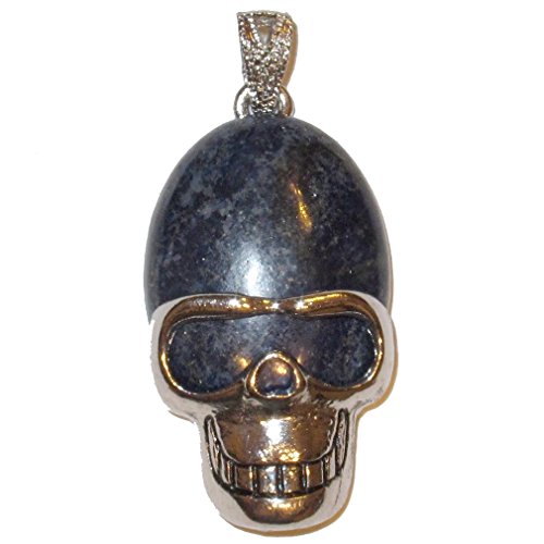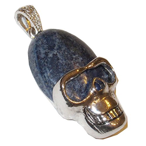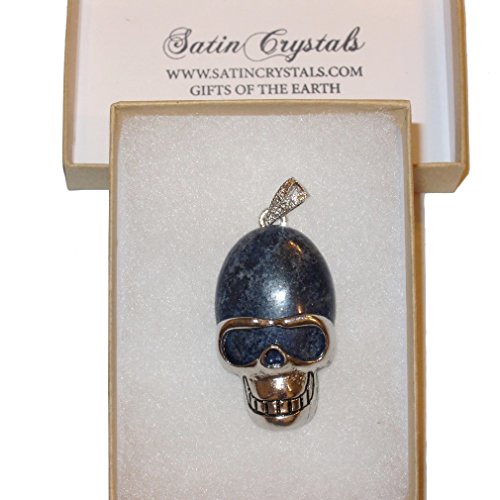 Your beautiful skull pendant is made from attractive deep blue Lapis Lazuli gemstone. The pendant has an oval stone with a friendly skeleton silver metal alloy frame and bail. You receive one per order from a limited hand select Satin Crystals collection.