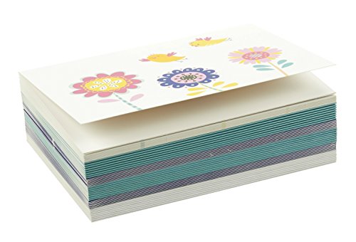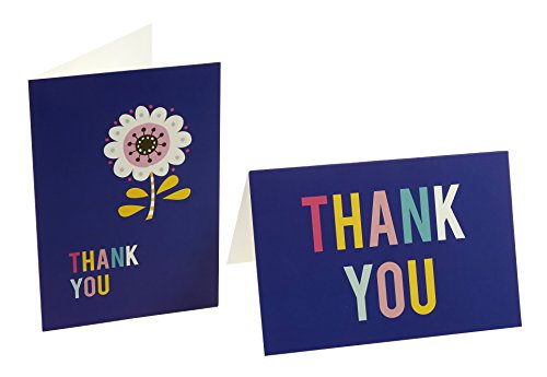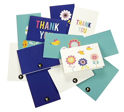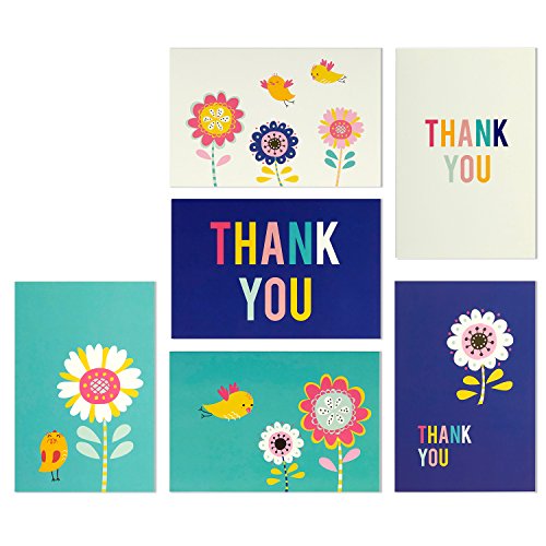 Flower Bird Thank You Greeting Cards - 6 Colorful Bright Blue Teal White Theme, Envelopes Included - 48 Pack