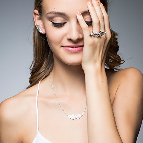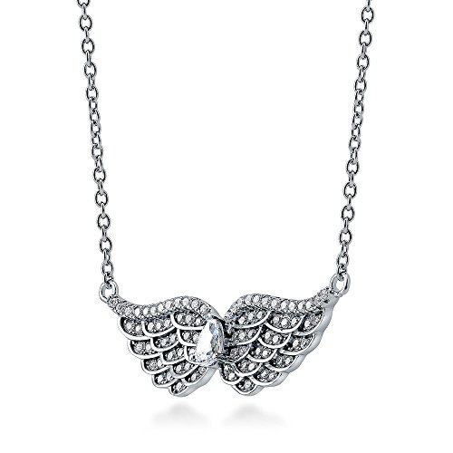-. Title : Rhodium Plated Sterling Silver Cubic Zirconia CZ Angel Wings Pendant Necklace 16"+2" Extender