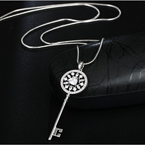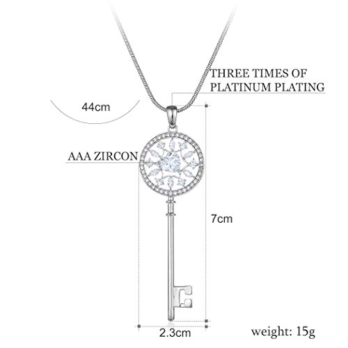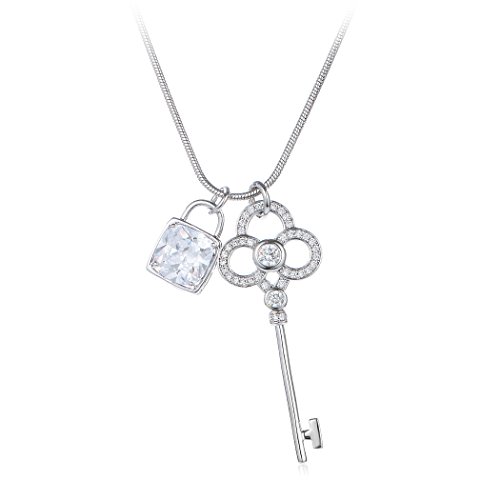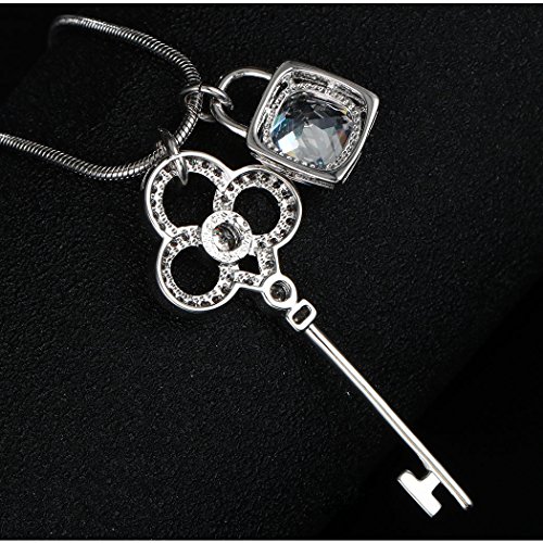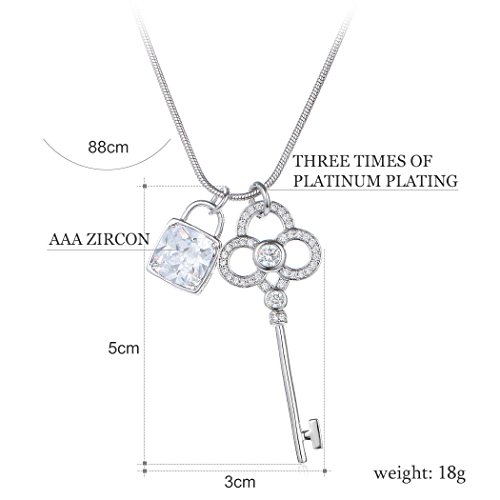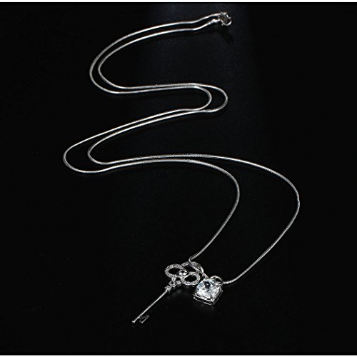 -. Title : HONGYE 18k Platinum Plated Cubic Zircon "Lock Love" Lock Key Pendant Sweater Necklace