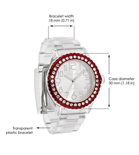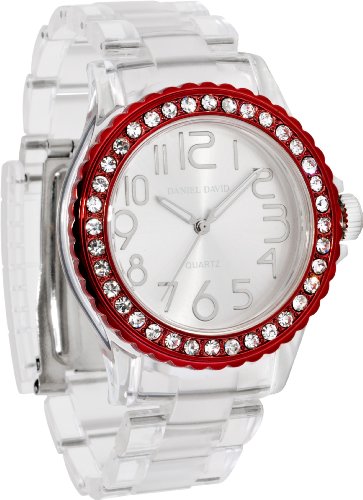 Daniel David Women's | Eccentric Transparent and Red Boyfriend-Style Bracelet Watch | HA0291