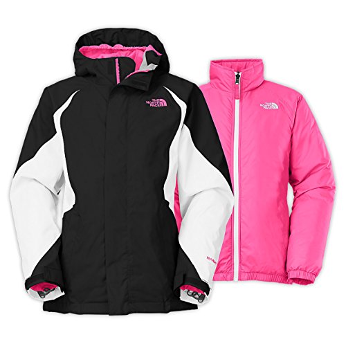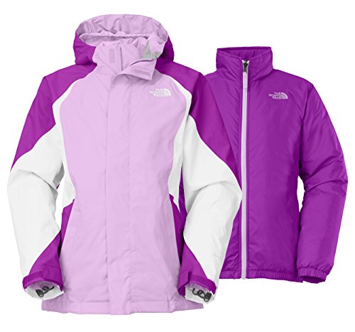 The 3-in-1 layering system of The North Face Girl's Kira Triclimate Jacket delivers not just one snowsports jacket, but three. The waterproof, insulated (100 g) exterior jacket is coupled with a removable insulated (160 g) liner to keep girls toasty in cold conditions. This insulated liner jacket easily snaps in and out, and can be worn as a standalone jacket on less frigid days. Features: -3-in-1 layering system pairs a waterproof, insulated exterior jacket with a removable, insulated liner -Zip-in and snap-in compatible with complementing garments from The North Face -Zip handwarmer pockets -Internal Velcro media pocket -Key clip -Powder skirt -Adjustable drawcord -Internal glove clip -Goggles cloth -Adjustable cuff tabs -System map of features printed on interior lining -ID label -Internal hem-stabilization system makes it easy for kids to zip the front -Right-sleeve pass pocket on Outer Jacket -Fixed hood -Zip polyurethane pull with asymmetrical artwork -Avg Weight: 28 oz -Center Back Length: 23.5" Fabric: -outer shell: 100% polyester (HyVent 2L waterproof/breathable) -lining: 100% nylon -outer jacket insulation: 100 g Heatseeker -liner jacket: 100% polyester taffeta -liner jacket insulation: 160 g Heatseeker Fit Tip: The XL jacket body size runs wide and the arms run short. If your child is tall/lanky, a Women's Size Small may fit better XXS: Size 5 (42-44") XS: Size 6 (45-47") S: Size 7/8 (48-53") M: Size 10/12 (54-59") L: Size 14/16 (60-64") XL: Size 18/20 (65-69")Feature