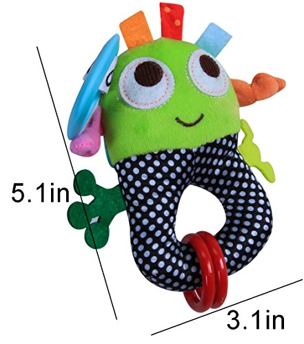 Soft plush robot toy with teething rings and texture tags,great for training baby's hearing, Visual, touching