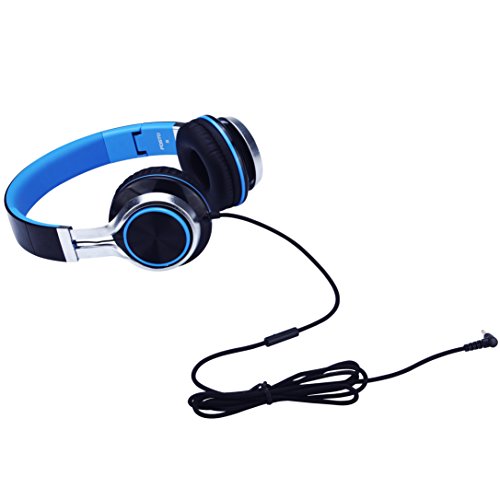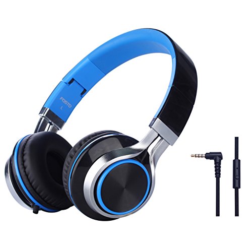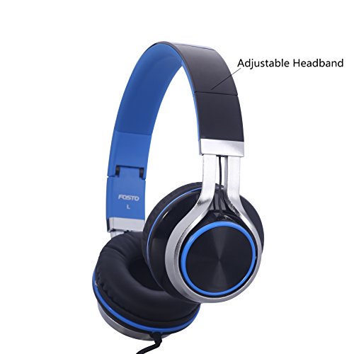 Headphones, FOSTO FT58 Stereo Folding Headset Strong Low Bass Headphones with Microphone for iPhone, All Android Smartphones, PC, Laptop, Mp3/mp4, Tablet Earphones (Blue/Black)
