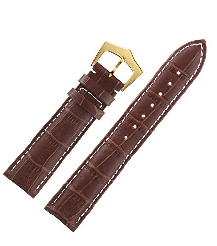 -. Feature : Brown genuine leather watch bracelet with accentuated contrasting white stitch, decent rectangular scales, and gold pin buckle attachment of stainless steel. Length: 75mm+119mm. Height: average 4mm. Width: 12mm. buckle width: 10mm. / Only the best and high-grade materials were selected and processed under strict quality controls. We use full grain Italian calfskin for this strap which owns its silky shine through matte finish. Moderate padding and premium leather provide maximum comfort and style. / Special treatment joins upper and lining leather seamlessly and ensures a high level. This watch band meets many physical requirements, such as tensile strength, suppleness, color fastness and resistance to sweat, all of which guarantee its longevity. Since our watch strap is water resistant, please keep it away from water during bath and swimming. / These watch straps are available in several colors and designs: black leather with black stitch, black leather with white stitch, brown leather brown stitch, brown leather with white stitch, dark brown leather with dark brown stitch, dark brown leather with white stitch. And buckles of four different colors also available for your desired look, silver, black, gold, rose gold. / It's specially designed and made for your luxury watches. It can be applied to watches with standard straight lug ends, such as Tissot, Longines, , , Mido, Omega, , , Tudor, Movado, Rado, Hamilton, Titoni, Certina, , Swiss Military, MontBlanc, Girard-Perregaux, Carl F.Bucherer, , Kronsegler, Jaeger, Invicta, Zenith, Ranceas, Timex, DAVOSA, Oris, etc.