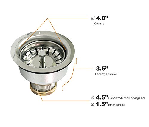 Everflow Stainless Steel Deep Duo Strainer 7532, Snaplock Basket with Brass Lock & Brass Slip Nut, Fits Sinks with 3-1/2 Inch, 4 Inch Opening, Ball Bearing Snap Post, Rolled Edge, Corrosion Resistant