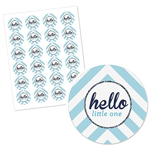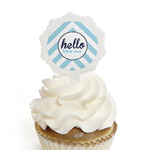 Hello Little One - Blue and Silver - Cupcake Picks with Stickers - Boy Baby Shower Party Cupcake Toppers - 12 Count