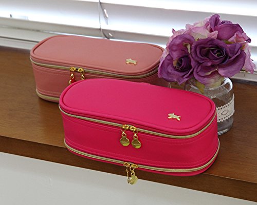 Lovely Dual Compartments Organizer Multi Pencil Case Desk Pencil Holder Self Standing Practical Pencil Case Double Zip Closure Makeup Pouch Bag , 8.2” X 3.7” X 2.9” (Hot Pink)
