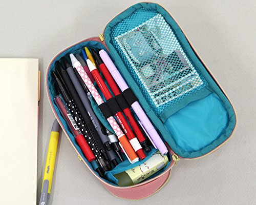 Convenient and Practical dual compartments; Enough rooms to hold writing instruments, cosmetics, etc