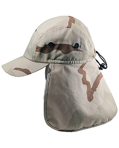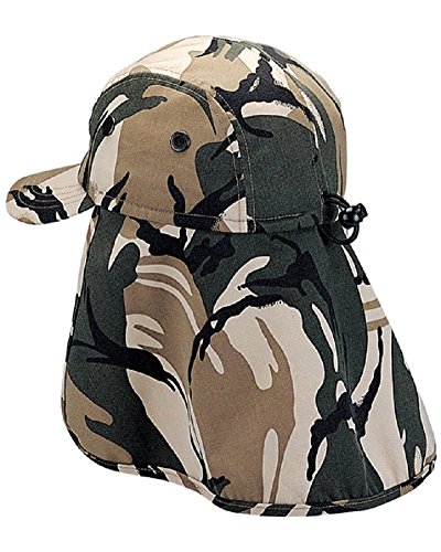 Binding : Apparel Product Description Planning your next camping trip or hiking adventure, make sure our khaki Sun Cap with Flap is on your checklist. Made from a unique blend of cotton and, this hat is ideal to take along on small outdoor excursions, offering all the protection of our much bigger caps, without all the unnecessary inch extras inch . Featuring a 5 paneled crown with breathable brass lined mesh holes to allow full ventilation and circulation of the head, so you never have to worry about inch over heating inch . Boasting 3 inch long precurved bill and 7 ? inch long fabric neck, to provide you with roomy shade and shield you from the sun. Fitted in the back with a self adjusting elastic closure with toggle, you are sure to have the perfect fit you require on your particular activity. Lightweight and easy to pack almost anywhere makes this hat the ideal vacation or trip hat. Simply pack it, stuff it, fold it or crush it, only to have it come out looking brand new every time. Guaranteed to be a hat that will not disappoint. Try one in any of our amazing colors: Camouflage, Grey, Khaki, Desert Camouflage, New Desert, Olive and Safari Camouflage. Made from 65% Polyester and 35% Cotton. Pre Curved Bill measures 3 inch Long. One Size with Elastic Closure fits up to XL. Crown features 5 Panels, with an attached fabric flap 7 ? inch long. 0