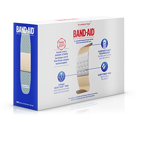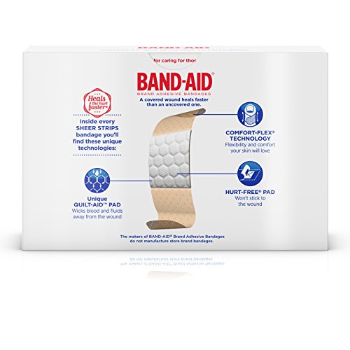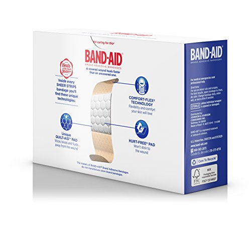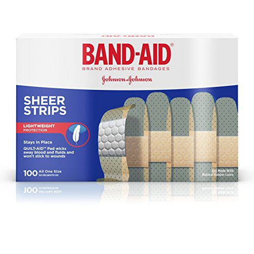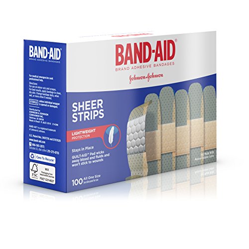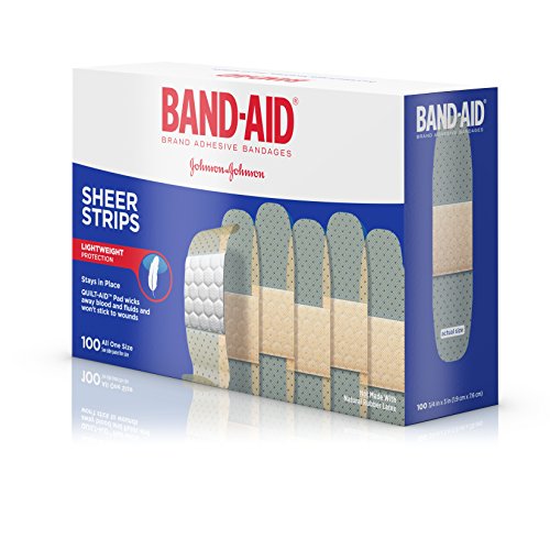 Band-Aid Brand Adhesive Bandages Sheer Strips are designed to be more flexible than ordinary plastic bandages. This design helps them to stay in place while they cover and protect minor wounds. These bandages feature a Quiltvent pad with air channels and Microvent backing for superior breathability. The pad wicks away blood to keep the wound clean and is nonstick for comfortable removal.Feature
