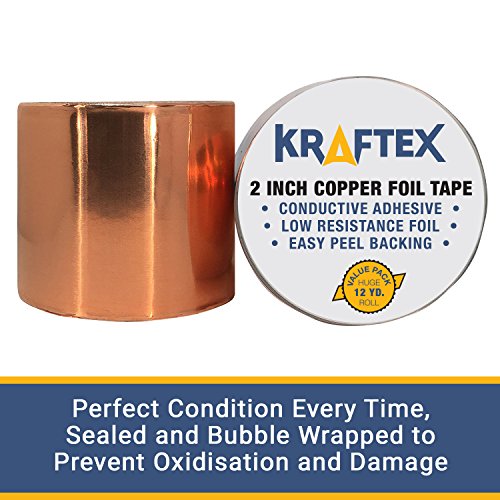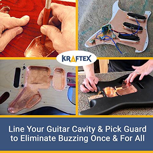 - DESIGNED BY GUITARISTS FOR GUITARISTS - Tired of hum and interference when you're playing your guitar? We are too! Kraftex provides a quick fix with it's flexible and conductive 2 inch copper tape. The perfect size to easily line the cavity and pick guard of your guitar and cut out annoying buzzing once and for all. The conductive adhesive makes it easy to install, so don't worry, Kraftex has got you covered.