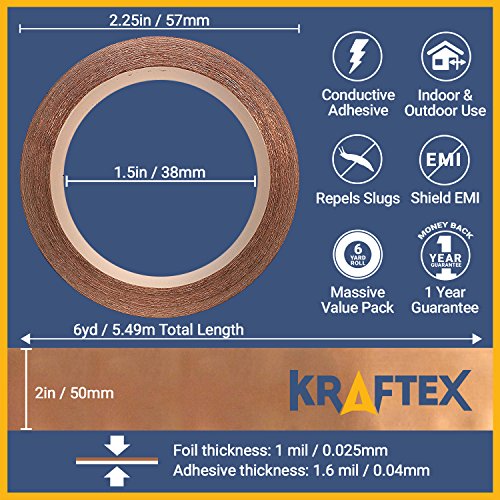 - SAY GOODBYE TO EMI AND RFI - Quickly protect your devices from electromagnetic and radio-frequency interference. Kraftex copper tape offers a quick and simple solution. The adhesive is strong, flexible and highly conductive, making it easy to protect your electronics.