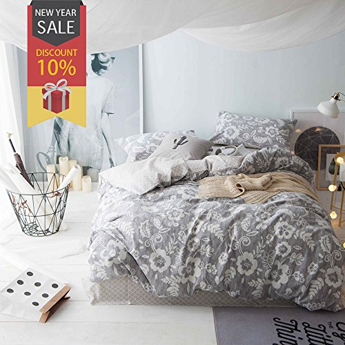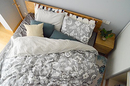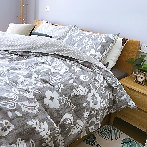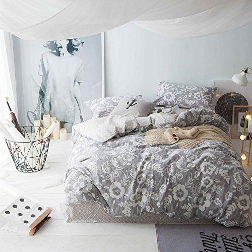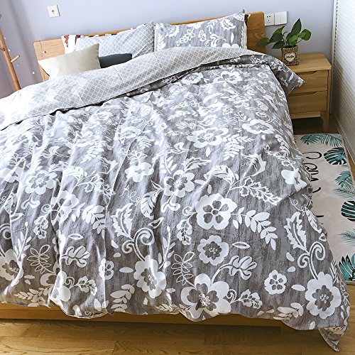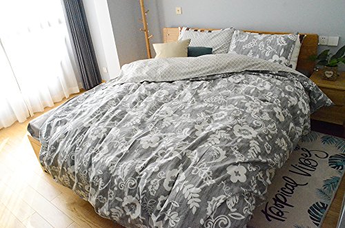 (Uozzi Bedding)/Bedding Bath/Bedding/DIRECT FROM USA/Uozzi Bedding 100% Natural Washed Cotton 3 Piece Duvet Cover Set, Gray Floral Pattern, Ultra So...