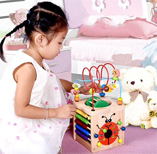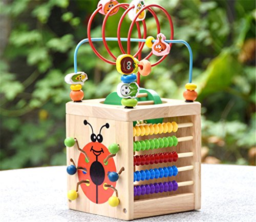 -. Feature : COLORS AND QUALITY OF WOODEN ACTIVITY CUBE - Brightly colored with fun shapes and styles,sturdy wooden bead maze cube and comes assembled. / This Wooden Activity Cube is wonderful because of many features of this activity center itself.Five sided fun activities of this play cube for toddlers keep curious hands busy and let kids explore and discover. / The activity center is made of sturdy wood that can withstand all of your child's exciting adventures and gameplay. Stable, colorful and fun to look at, this activity center measures 16-inches high by 12-inches wide by 12-inches deep. The cube is safe and recommended for children 12-months of age and up. / This multi-dimensional activity cube has five different sides of fun games for your little one. Activities include curvy bead mazes, peek-a-boo open and close doors, racing car rollers, animal matching and ABC tiles. With so many different activities, your toddler is sure to stay entertained with this toy for hours. / INDEPENDENT AND EDUCATIONAL TOY - 5 Activities entertainment play cube for toddlers.Encourage your child to recognize shapes,colors and develop fine motor,hand-eye coordination and problem solving skills.