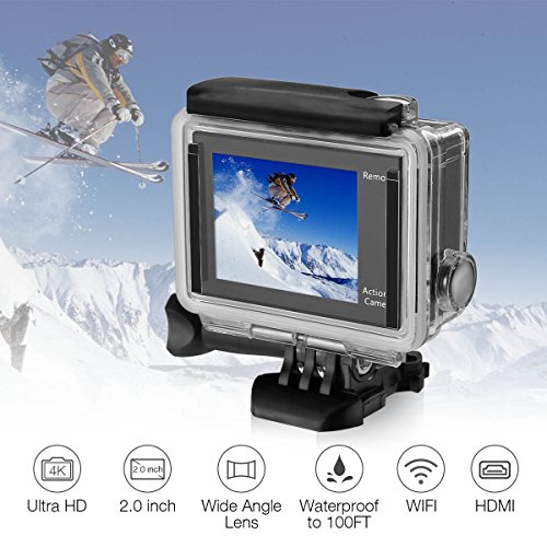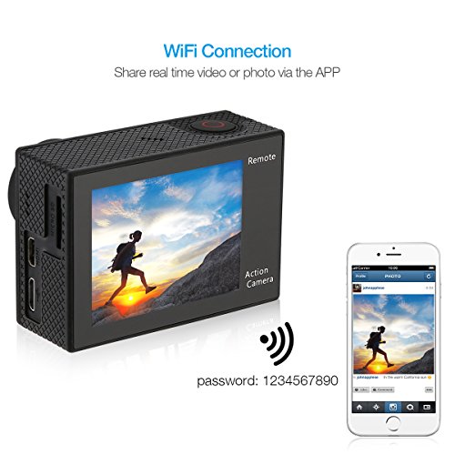 【4K Ultra HD and 170 Degrees Ultra-wide Lens】: This action camera records videos by full HD 4K@25fps, 2.7K@30fps, 1080P@60fps Megapixels high quality images. The 170 degrees ultra-wide lens allows more of the scene to be included in the photograph.