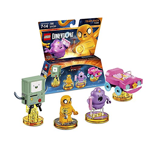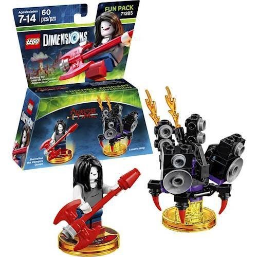 -. Feature : The Starter Pack Includes L.E.G.O characters from a mix of some of the best brands in the universe join forces and battle in worlds outside of their own. A Dark Knight, a Wizard, and a L.E.G.O Master Builder traveling together down the Yellow Brick Road is just the beginning. By purchasing additional expansion packs, players can grow their collection with a variety of their favorite brands to create even more crazy combinations. / Bring up to seven , vehicles and/or gadgets into the game all at once by dropping them on the L.E.G.O Toy Pad for the most exciting and action-filled game around. Players can let imagination guide their solo journey or have a friend join the adventure with co-operative, drop-in/drop-out play. L.E.G.O Dimensions is a system of play that offers continued compatibility - everything bought today or expanded with tomorrow will continue to work. / Help Finn the Human on his mission to find the Enchidrion and prove to P.R.Incess Bubblegum that he's a hero! Battle foes as you travel through the Forest of Mount Cragdor, the Dark Magician's Brain World, and more in this exclusive Adventure TimeTM game level. Build Finn and use one of his many special swords to cut vines, grapple, and even deflect lasers! When he's stuck and in need of a lift, add the rebuildable Jakemobile and Ancient War Elephant into the game. / Rebuild the Jakemobile into Snail Dude Jake and Hover Jake, and the Ancient War Elephant into the Cosmic Squid and Psychic Submarine to blast your way through enemies and tackle trickier puzzles. Unlock the Adventure Time Adventure World and challenge friends in the Pillow World Battle Arena. / Join Mar's party with this L.E.G.O Dimensions Adventure Time fun pack. Use her Sonar Smash and Bolt Deflector abilities, using the Mar Axe Guitar Activate her Telekinesis and Teleport skills to make your way through the Adventure Time Adventure World and Battle Arena Build and use Mar's Lunatic Amp to make some noise and rebuild it into the Shadow Scorpion and Heavy Metal Monster when you need even more power. activates Mar's Bolt Deflector and other special game functions.