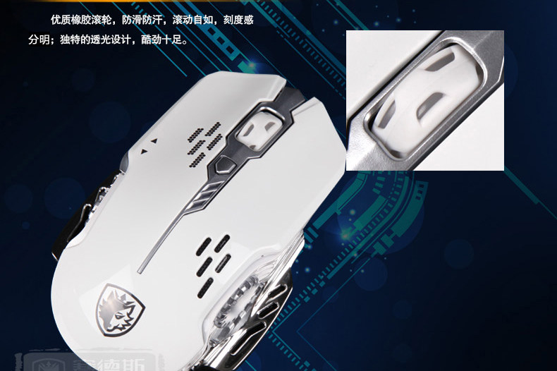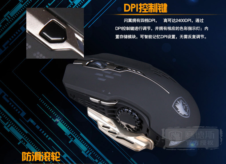 理由六:鼠标底部增加金属质感双翼,加重手感,更加经典时尚,握感舒适;