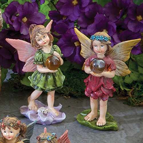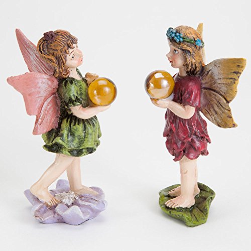 Bits and Pieces - Set of Two Adorable Hand Painted Wishball Fairies - Made of Durable Polyresin to Make Perfect Garden Statues