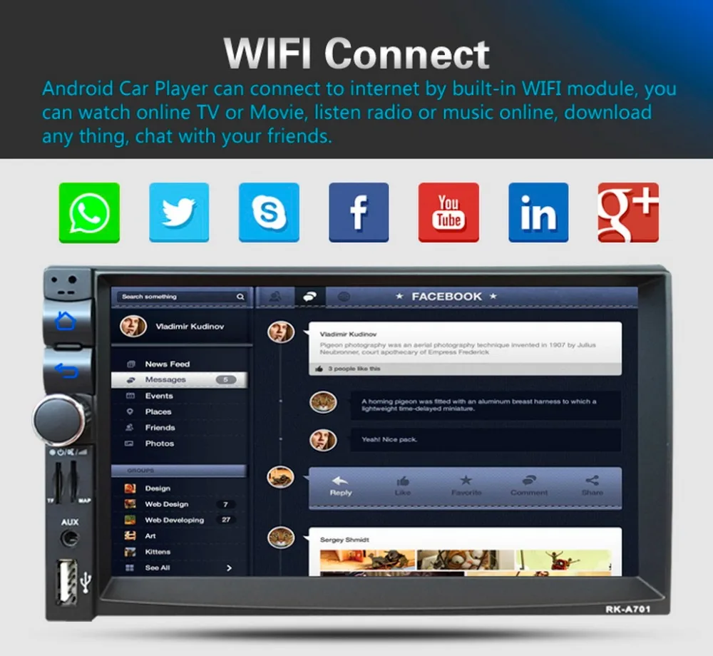 6. Built-in Bluetooth, phonebook and A2DP BT music