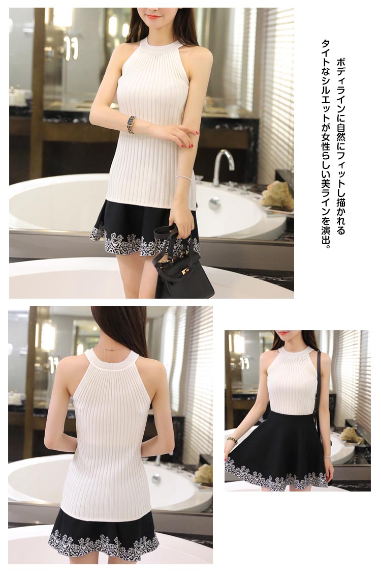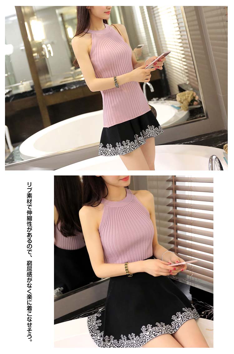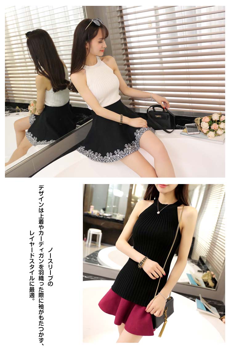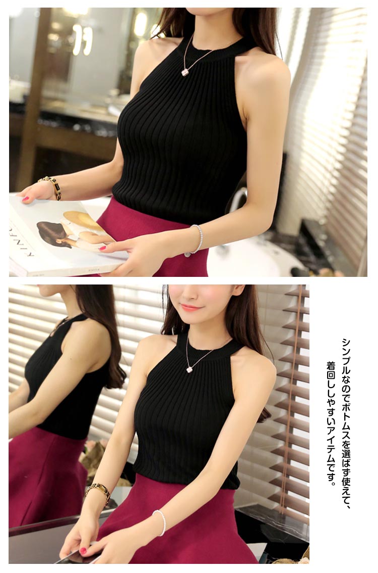 | ジャケットやカーディガンのインにぴったり♪上品素材のノースリーブリブニット。リブ素材で伸縮性があるので、窮屈感がなく楽に着こなせそう。ボディラインに自然にフィットし描かれるタイトなシルエットが女性らしい美ラインを演出。ノースリーブのデザインは上着やカーディガンを羽織った際に袖がもたつかず、レイヤードスタイルに最適。シンプルなのでボトムスを選ばず使えて、着回ししやすいアイテムです。 | |