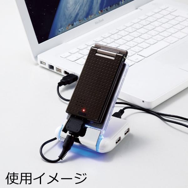 | USBハブ付携帯電話スタンド。 |