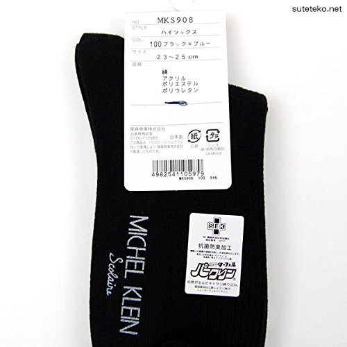 원본상품명: (ミッシェルクラン)MICHELKLEIN 32cm丈スク?ルハイソックス (100)ブラック×ブル?刺? 23-25cm MKS908