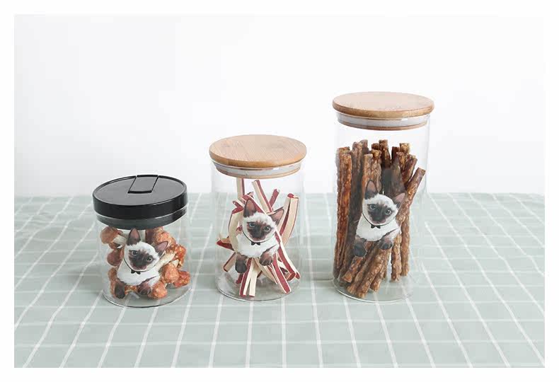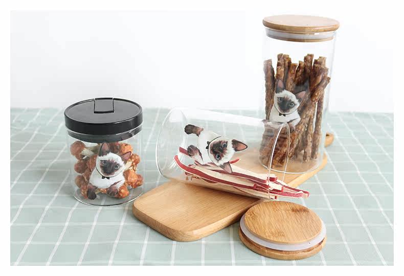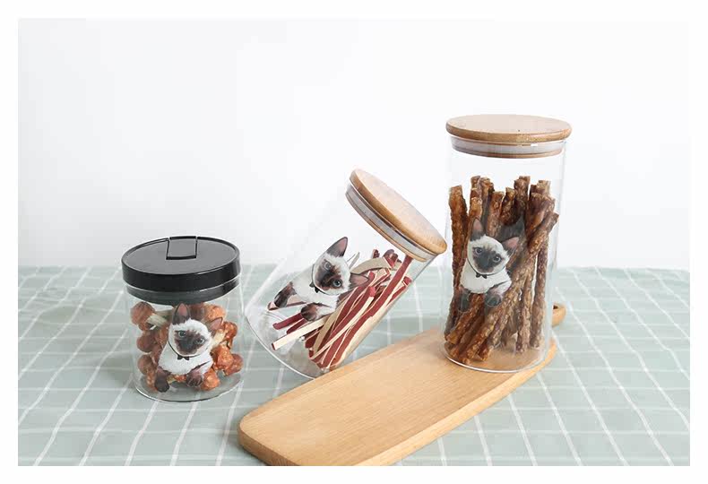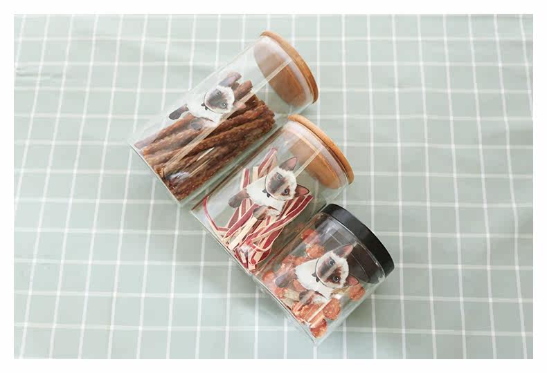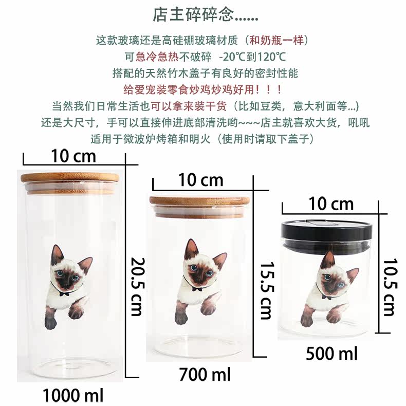 暹罗猫咪系列呆萌宠大容量玻璃密封罐防潮储物罐子便携宠物零食罐
