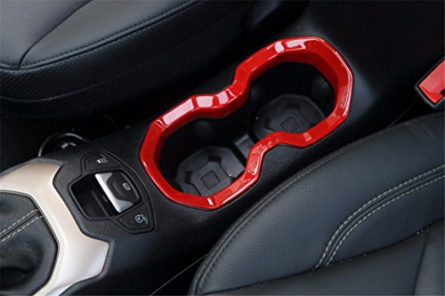 FMtoppeak Red Interior Styling Moulding ABS Water Cup Bottle Holder Frame Ring Trim Cover For Jeep Renegade 2014 UP