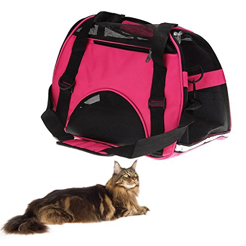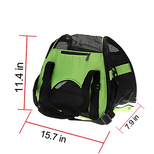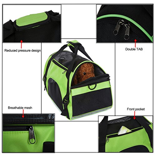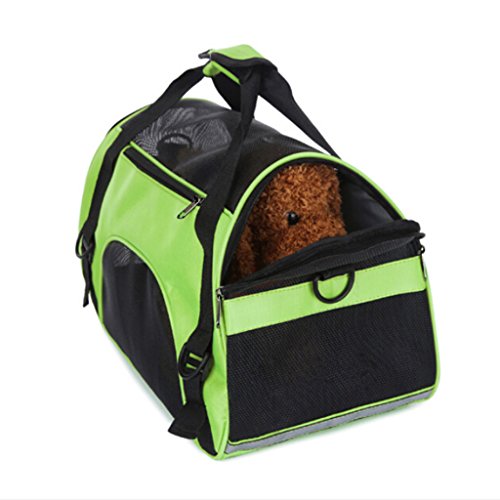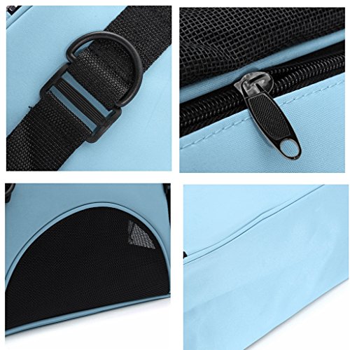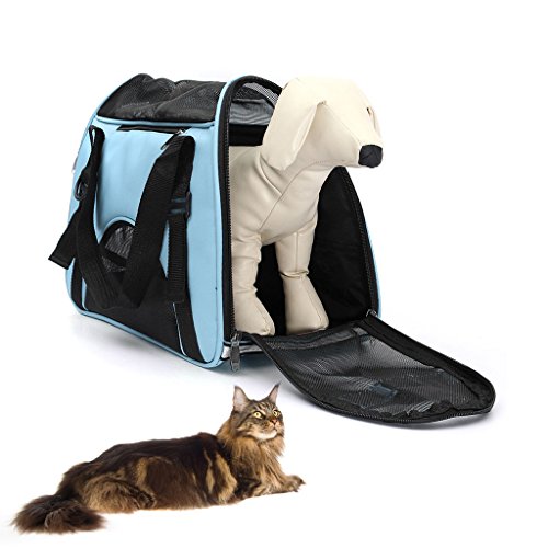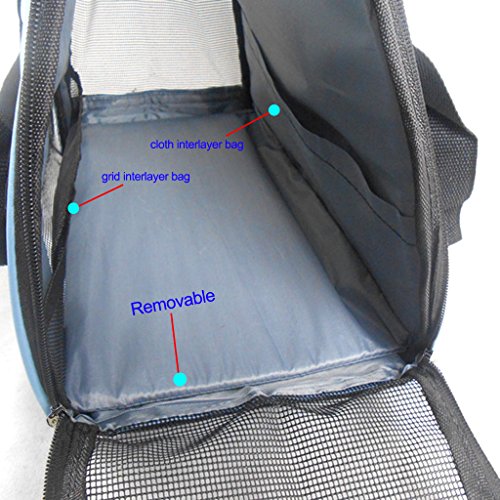 -. Feature : ★ Breathable mesh,Environmental tasteless,Oxford cloth.can carry about 20 pounds ,Size 17" * 11.4" * 7.9". / ★ Half zip opening on one end, full zip opening on the other end and added mesh panels allow maximum accessibility and ventilation for your pet. / ★ Exclusive Pet Connect side zipper opening allows you to safely interact and comfort your pet while traveling and shipping. / ★ Reduced pressure design,The shoulder belt buckles design,can portable,and also use as a Single shoulder bag.we can put our pet in it when we by plane / ★ Reflective strips,seatbelt loops and locking zippers for added safety.and the bottom has a pet mat, grid interlayer bag, cloth interlayer bag in it.