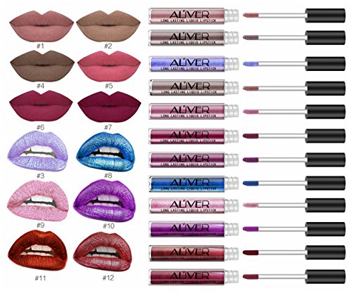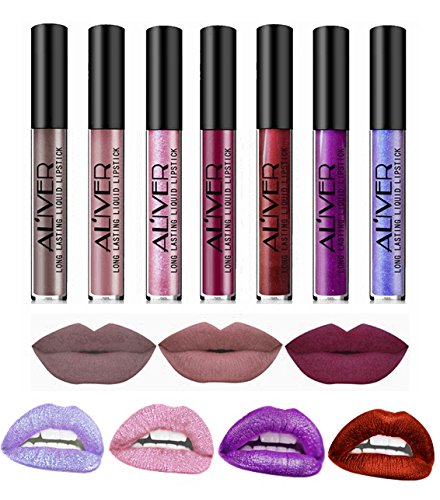 -. Title : AL'IVER Matte Liquid Lipstick 7 PCs Waterproof Glitter Lipstick Lip Gloss Long Lasting Stains Tints Set