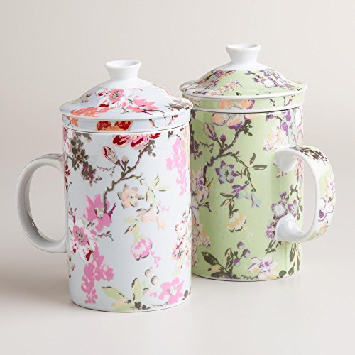 -. Brand : World Market -. Color : Yellow -. Feature : Brew a hot cup of tea in this porcelain infuser mug decorated with a cascade of blossoming branches on dusty blue or green backgrounds / This beautiful teacup is crafted of porcelain / Choose from either Green or Blue / 12 Ounce Tea Cup - Includes filter and lid / Dishwasher safe, 3.55" in Diameter x 4.33" Height -. Label : World Market -. Manufacturer : World Market -. PackageQuantity : 1 -. ProductGroup : Kitchen -. ProductTypeName : KITCHEN -. Publisher : World Market -. Size : 12 Ounces -. Studio : World Market -. Title : Blossoming Flowers Infuser Porcelain Teacup Mug with Lid and Filter - 12 Oz