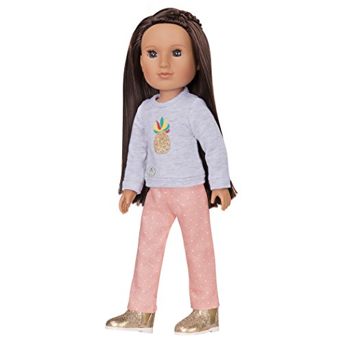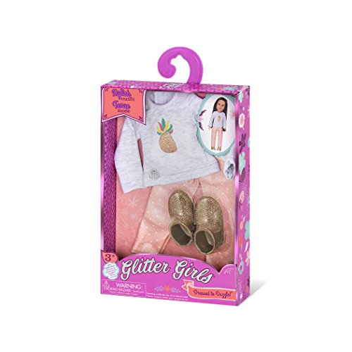 -. Feature : This stylish glittery outfit comes with a long sleeve top with a glittery pineapple applique, a pair of comfy polka dot pants and a pair of gold glittery shoes! / The adorable doll wearing this outfit is Sarina (not included) / Compatible with most 14" dolls including Wellie Wishers / 14" doll outfit / recommended age 3+