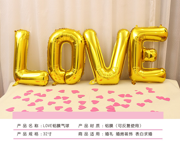 结婚婚礼婚房装饰布置求婚表白布置装饰LOVE字母铝膜气球心形气球