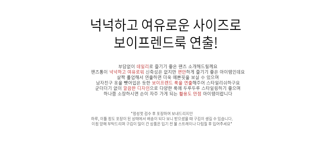 .같은 사이즈라도 체형에 따라 핏감이 조금씩 다를 수 있습니다.